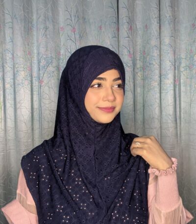 Malaysian Chicken ambrodary Strech Fabrics Ready Hijab-Navy
