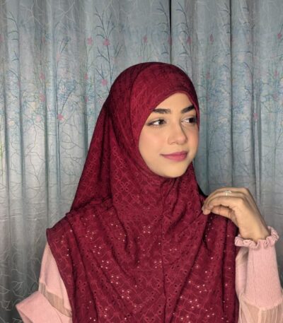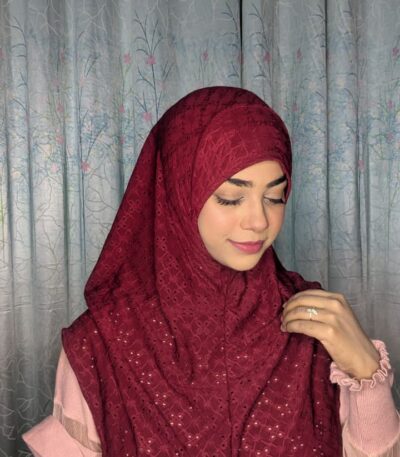 Malaysian Chicken ambrodary Strech Fabrics Ready Hijab-Maroon
